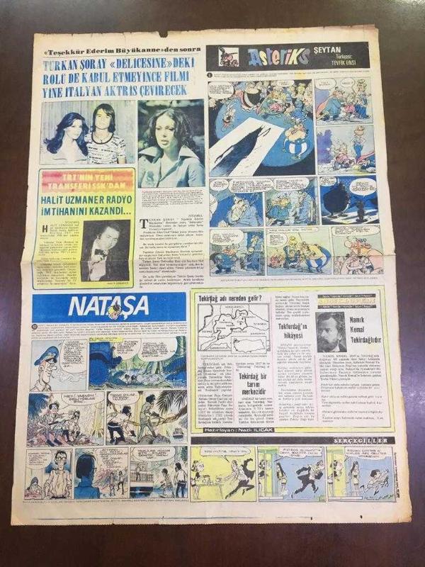 İNCİ GAZETESİ, 1970'LER (2 SAYFA, TEK YAPRAK) - TÜRKAN ŞORAY ''DELİCESİNE''DEKİ ROLÜ DE KABUL ETMEYİNCE FİLMİ YİNE İTALYAN AKTRİS ÇEVİRECEK - HALİT UZMANER - ASTERİKS, ŞEYTAN, TEVFİK UNSİ - TEKİRDAĞ ADI NEREDEN GELİR? TEKİRDAĞ'IN HİKAYESİ - NAMIK KEMAL TEKİRDAĞ'LIDIR - NATAŞA, ÇİZGİ ROMAN - KARA KUVVETLERİ VAKFI YARARINA DEFİLE YAPILDI - ŞEYTAN KULESİ, MURAT SERTOĞLU - BENİM KÜÇÜK SEVGİLİM, ASLIHAN - AŞIK ŞAH SENEM RÖPORTAJI - KOJAK YILBAŞINDAN SONRA EKRANLARA GELİYOR, TELLY SAVALAS - BAY MUHTEREM, ALİ GALİP ALTUNÇUL adlı eser Türkçe dilindedir.