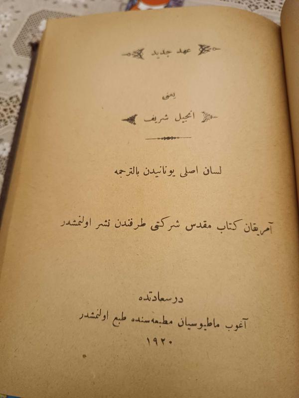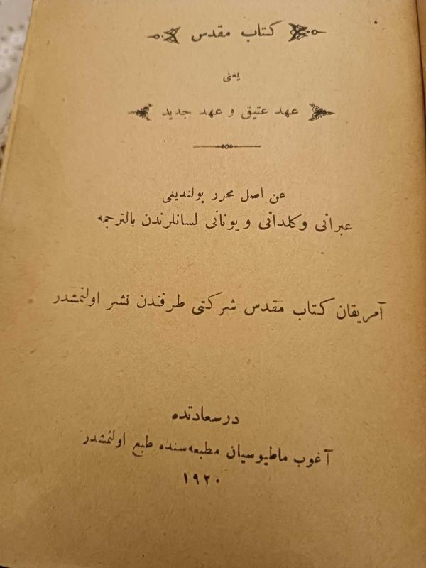 Kitap 1920 yılında Agop Madosyan Matbaası & Amerikan Kitabı Mukaddes şirketi tarafından [Dersaadet ] yayınlanmıştır. 1.450 sayfadır. İNCİL yani Ahdi Atik Ahdi Cedid İbranice, Keldani ve Yunanca dillerinden bittercüme ( Osmanlıca ) adlı eser Osmanlıca dilindedir.