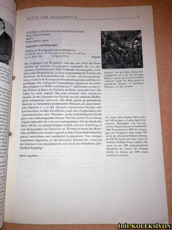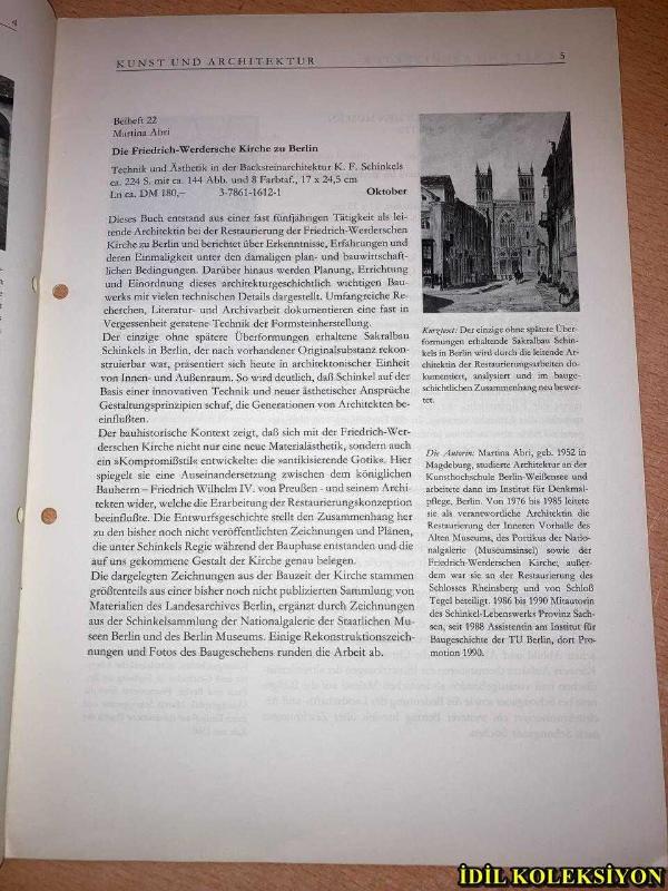 Kitap 1991 yılında GEBR. MANN VERLAG tarafından [BERLİN] yayınlanmıştır. 23 sayfadır. INFORMATİON 2/91 / GEBR. MANN VERLAG / ALMANCA KATALOG DERGİ (BİLGİ 2/91) adlı eser Almanca dilindedir.