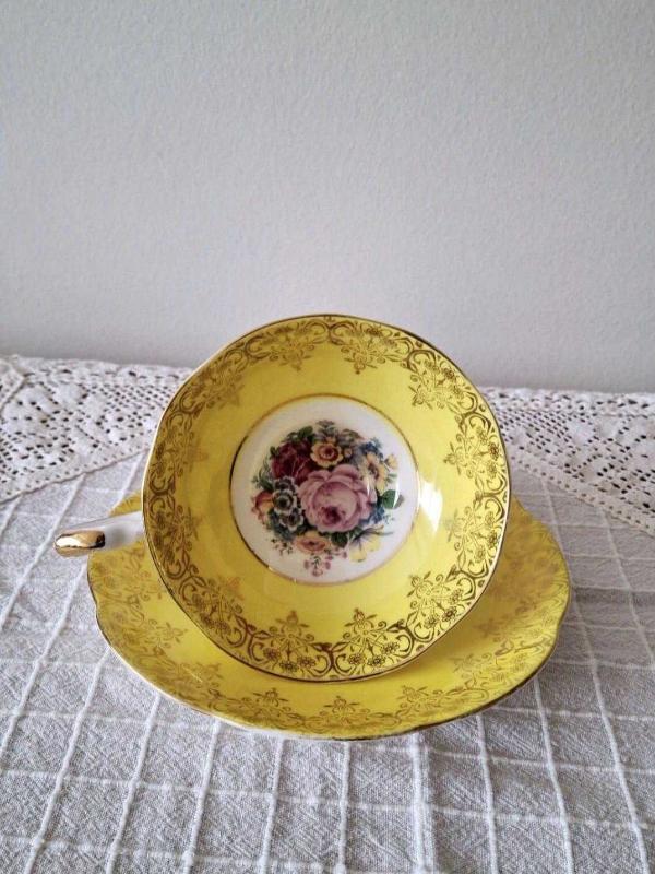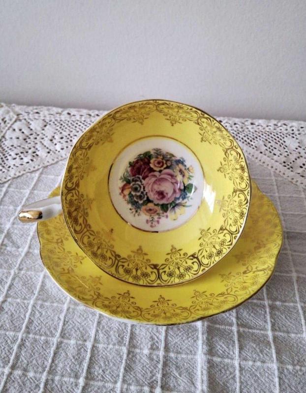 ingiliz el boyama sarı çay boy altın yaldızlarında silinme yoktur görünür hiç bir yerinde problem yok tabağın arkasında bir kaç nokta şeklinde var
