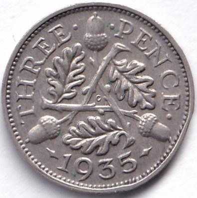 İNGİLTERE 3 PENCE 1935 ÇA GÜMÜŞ:1,4 GR/KRAL 5.GEORGE, dün satışa sunulmuştur.