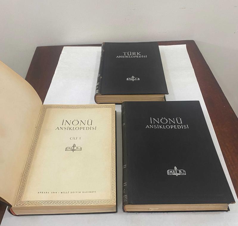 kapak sırtları,resimdeki gibi, bazılarında aşınma,cilt-2 bir forma gevşek,cilt-15 üst uçta 3 cm yarılma, doku kaybı yok – iyi sayfa ciltleri mükemmel korunmuş, kapakla bütünleşik – yeni gibi 1939 1.Neşriyat Kongresi sonrası,Milli Eğitim Bakanlığı,1 Ocak 1941'de ansiklopedi faaliyetlerini yürütmek için bir büro kurdu.Hasan Ali Yücel'in teklifi, İsmet İnönü'nün izni ile büro,"İnönü Ansiklopedisi Bürosu" adıyla çalışmalara başladı.1943'ten itibaren, “İnönü Ansiklopedisi”nin ilk fasiküllerini yayımladı. Cumhuriyet dönemi İLK MİLLİ ANSİKLOPEDİ “İnönü Ansiklopedisi”dir. 1984'de 33 CİLT olarak tamamlandı.İlk 4 ciltte 1946-1950 arası, “İnönü Ansiklopedisi” adı yer aldı. Çok partili dönemde, (5.cilt – 1952’den itibaren), sadece “Türk Ansiklopedisi” adıyla yayına devam etti. Hazırlık heyeti bazı isimler: İbrahim Alaettin Gövsa,Agah Sırrı Levend,Suut Kemal Yetkin,Şemsettin Günaltay,Abdulbaki Gölpınarlı,Faik Reşit Unat,Ekrem Akurgal...