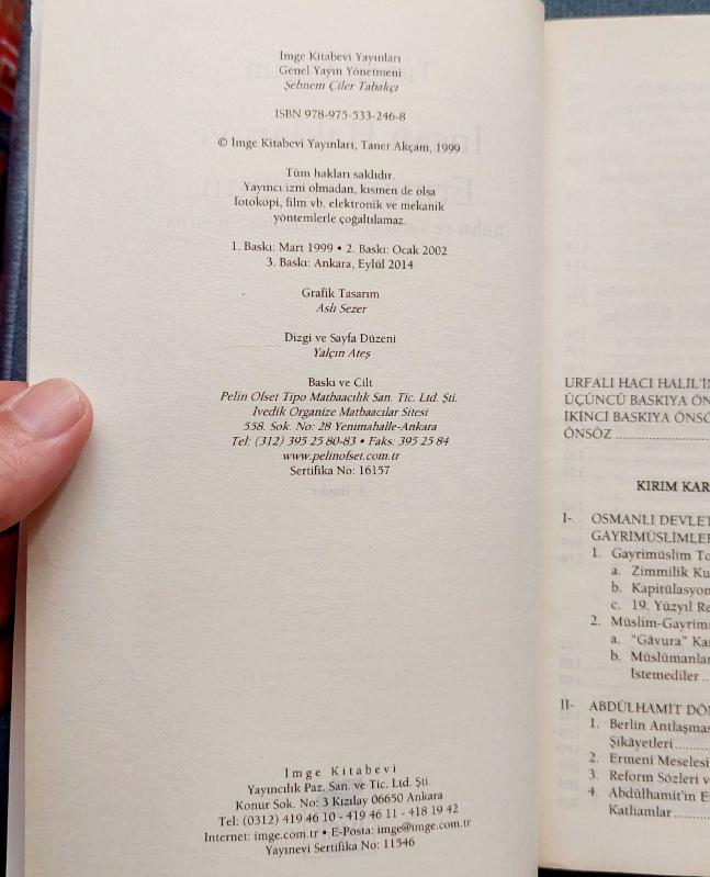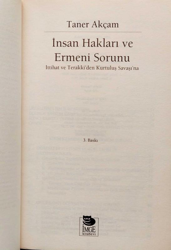 İNSAN HAKLARI ve ERMENİ SORUNU İTTİHAT VE TERAKKİ'DEN KURTULUŞ SAVAŞINA TANER AKÇAM İMGE KİTABEVİ 3. BASKI / EYLÜL 2014 575 SAYFA SIFIR KİTAP