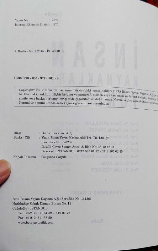 İNSAN KAYNAKLARI YÖNETİMİ Yazar: Durak Ataay , Lale Tüzüner , Gönen Dündar , Cavide Uyargil , Ahmet Cevat Acar , A.Oya Özçelik , Ömer Sadullah , Zeki Adal BETA YAYINCILIK 7. BASKI 2015 714 SAYFA KULLANILMAMIŞTIR. SADECE GİRİŞ SAYFASINA KULLANICI ADINI YAZMIŞ.
