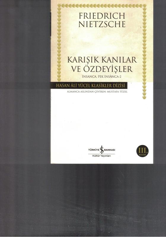 İNSANCA, PEK İNSANCA İKİ CİLT TAKIM - CİLT 1 İNSANCA, PEK İNSANCA CİLT 2 KARIŞIK KANILAR ve ÖZDEYİŞLER - HASAN ALİ YÜCEL KLASİKLER DİZİSİ -, FRIEDRICH NIETZSCHE tarafından kaleme alınmıştır. Kitap 2020 yılında TÜRKİYE İŞ BANKASI KÜLTÜR YAYINLARI tarafından [İSTANBUL] yayınlanmıştır. Bu baskının çevirisi MUSTAFA TÜZEL tarafından yapılmıştır. 521 sayfadır. İNSANCA, PEK İNSANCA İKİ CİLT TAKIM - CİLT 1 İNSANCA, PEK İNSANCA CİLT 2 KARIŞIK KANILAR ve ÖZDEYİŞLER - HASAN ALİ YÜCEL KLASİKLER DİZİSİ - adlı eser Türkçe dilindedir.