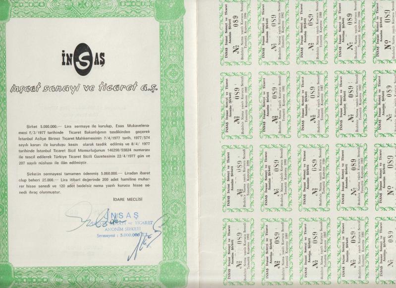 İNSAŞ İNŞAAT SANAYİ TİCARET A.Ş. NADİR HİSSE SENEDİ başlıklı ürün, Efemera, Müzik, Sinema > Belge ve Evraklar > Finansal Belge ve Evrak > Eski Hisse Senedi, Tahvil > Cumhuriyet Dönemi kategorisi altında İkinci El olarak satılmaktadır.