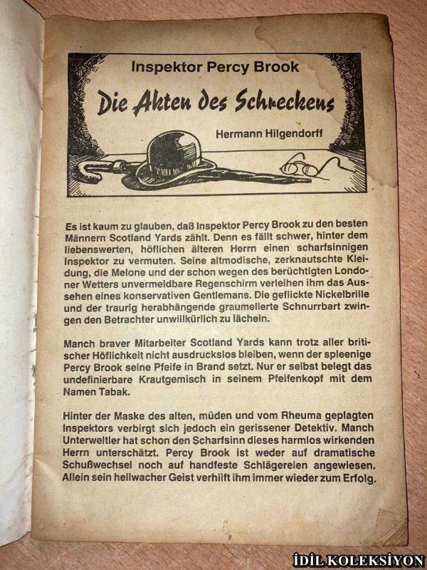 INSPEKTOR PERCY BROOK / DİE AKTEN DES SCHRECKENS / HERMANN HİLGENDORFF / MARTİN KELTER VERLAG / ALMANCA DERGİ (MÜFETTİŞ PERCY BROOK / DEHŞET EYLEMLERİ) HAFİF YIPRANMA VE LEKELERİ MEVCUT