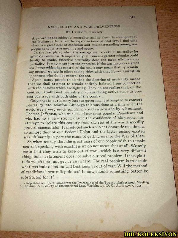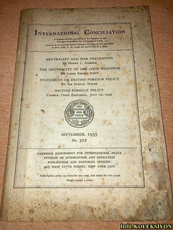 INTERNATİONAL CONCİLİATİON - SEPTEMBER 1935 / NO.312 - NEUTRALİTY AND WAR PREVENTİON / HENRY L. STİMSON - THE NEUTRALİTY OF THE GOOD NEİGHBOR / JAMES BROWN SCOTT - STATEMENT ON BRİTİSH FOREİGN POLİCY / SİR SAMUEL HOARE - BRİTİSH FOREİGN POLİCY - İNGİLİZCE KİTAP (345-389 SAYFA ARALIĞI) - ULUSLARARASI UZLAŞMA