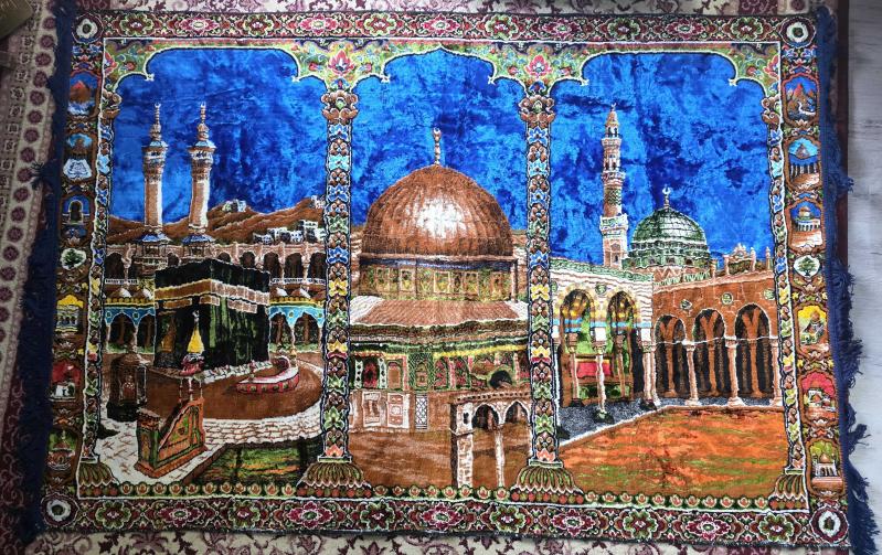 İPEK KADİFE - MESCİDİ AKSA VE KABE RESİMLİ DUVAR HALISI - 115X175 CM KULLANILMAMIŞ, en son dün güncellenmiştir.