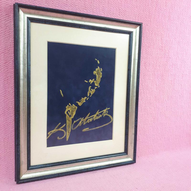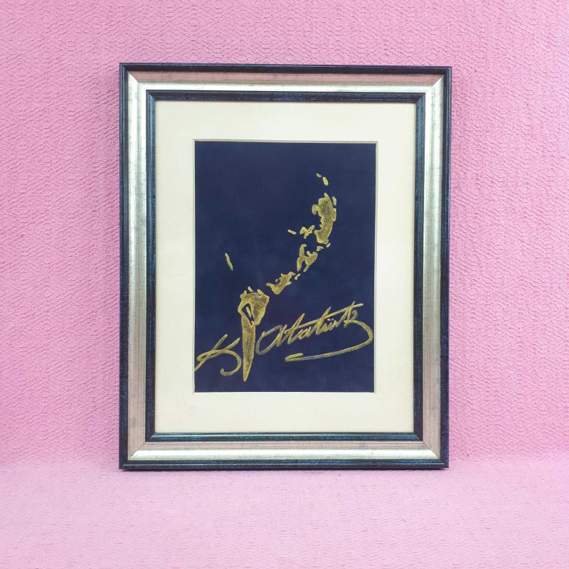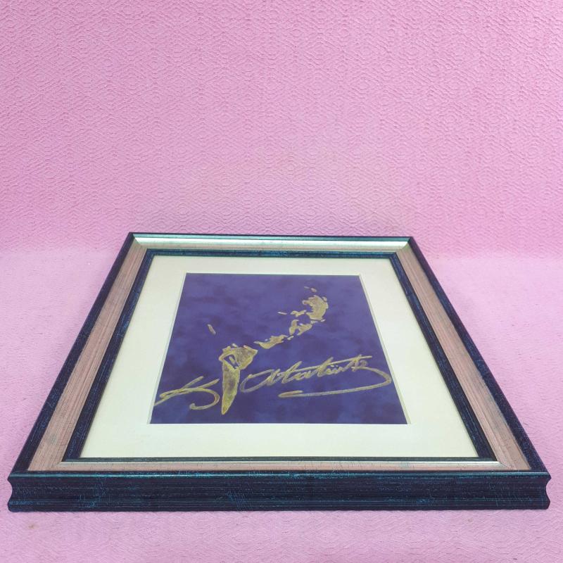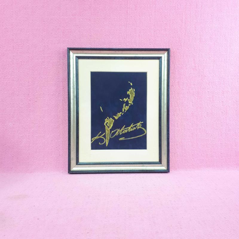 2000 LERDEN . ÇERÇEVELİ ÖLÇÜLERİ 29 x 35 cm , LACİVERT RENKLİ İPEK KADİFE BEZ ÜZERİNE EL İŞİ ALTIN YALDIZ İKONİK ATATÜRK PORTRE . LACİVERT VE GÜMÜŞ YALDIZ ÇERÇEVELİ , NONREFLEKTE CAMLI . KUSURSUZ .
