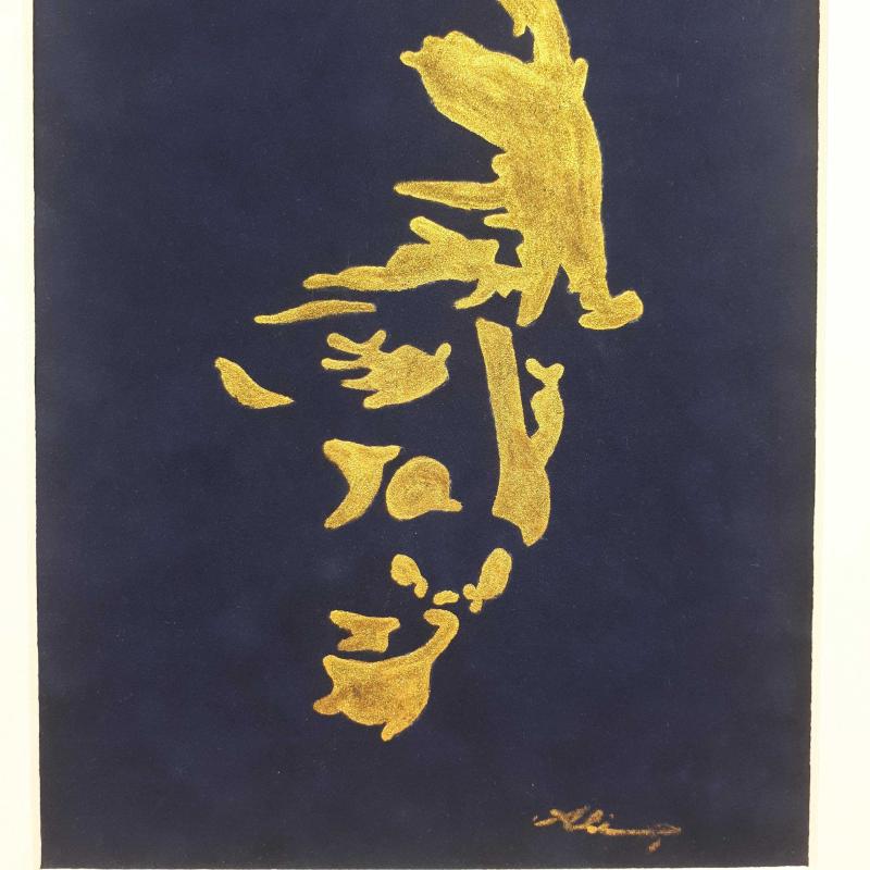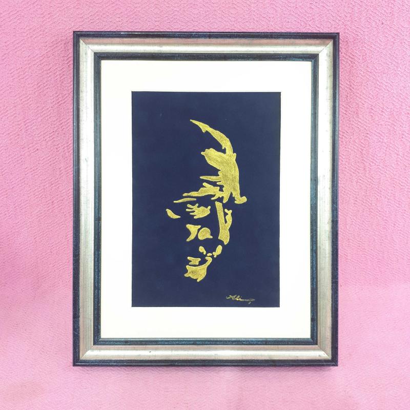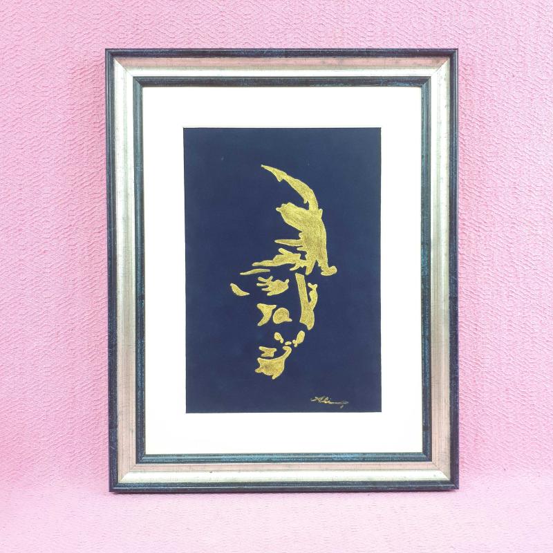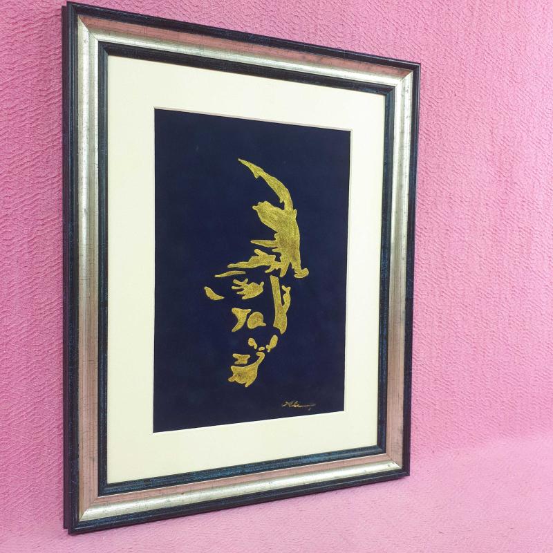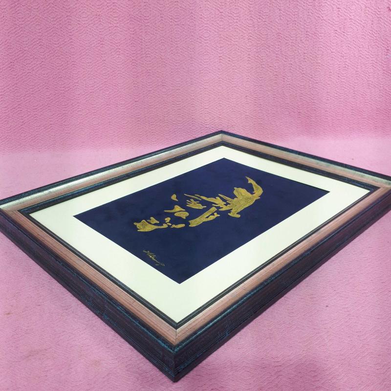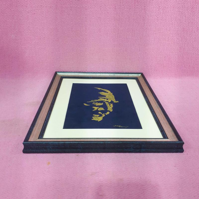 2000 LERDEN . ÇERÇEVELİ ÖLÇÜLERİ 29,5 x 37 cm , LACİVERT RENKLİ İPEK KADİFE BEZ ÜZERİNE EL İŞİ ALTIN YALDIZ İKONİK ATATÜRK PORTRE . LACİVERT VE GÜMÜŞ YALDIZ ÇERÇEVELİ , NONREFLEKTE CAMLI . KUSURSUZ .