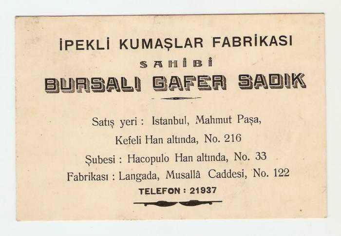 İPEKLİ KUMAŞLAR FAB.BURSALI GAFER SADIK KARTVİZİTİ..., en son 22 gün önce güncellenmiştir.