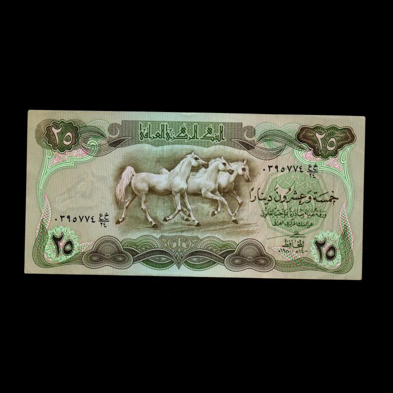 Resimdeki 1980 yılı 0395774 seri numaralı ürün gönderilecektir. Büyük atlar olan büyük ebat baskı az çıkan Irak 25 dinarıdır.