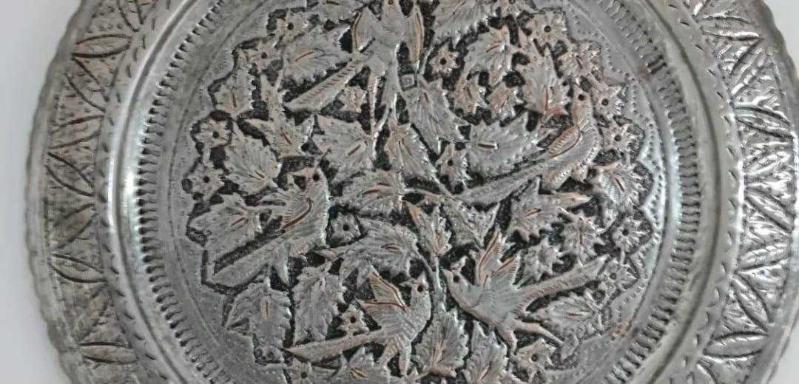 İRAN İŞİ EL OYMASI KUŞLU GÜMÜŞ BAKIR ALAŞIMLI SİNİ 40 CM başlıklı antika/koleksiyon objesi Asya menşe’lidir. 1900-1919 arası dönemine aittir.