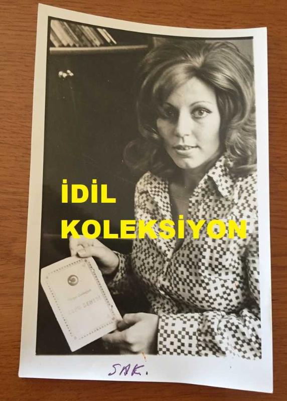 İRFAN ATASOY'UN EŞİ HAMİYET YANKI ATASOY'UN ORİJİNAL FOTOĞRAFI - 18 x 12 cm EBADINDA - HAMİYET YANKI ATASOY ELİNDE TUTTUĞU TAPU SENEDİYLE POZ VERİRKEN