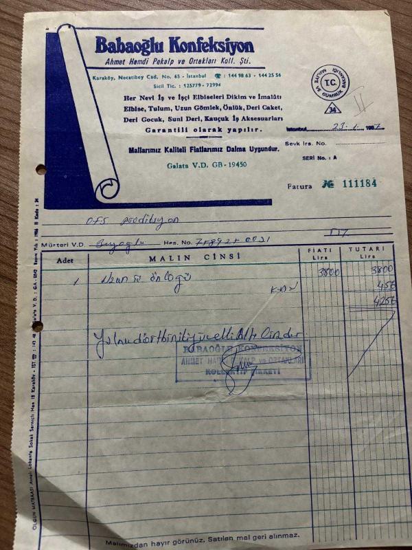 İŞ ÖNLÜĞÜ FATURASI - 23 OCAK 1987 - BABAOĞLU KONFEKSİYON - AHMET HAMDİ PEKALP VE ORTAKLARI KOLL.ŞTİ. - KARAKÖY, İSTANBUL - OSMAN FAHİR SEDEN, O.F.S. PRODÜKSİYON - BEYOĞLU, İSTANBUL - ISLAK İMZALI, KAŞELİ - 21 x 29 cm EBATLI ORİJİNAL FATURA - TÜRK SİNEMA - FİLM TARİHİ, en son 1 yıl önce güncellenmiştir.