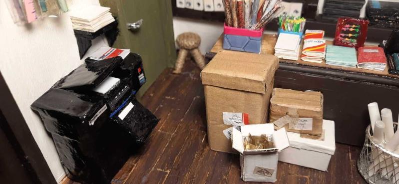 IŞIKLANDIRMALI TAMAMEN EL YAPIMI MİNYATÜR KIRTASİYE EN: 42 cm YÜKSEKLİK: 24cm DERİNLİK: 22cm