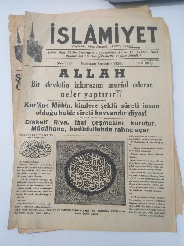 İSLAMİYET Haftalık, Dini, İçtimai, Ahlaki Gazete, 21 Ağustos 1950, Sayı:123 ( Baş Yazarı: Şemseddin Yeşil ) - 28.5/40 cm., Baş Yazarı: Şemseddin Yeşil tarafından kaleme alınmıştır. Kitap 1950 yılında KUTAY MATBAASI tarafından [İSTANBUL] yayınlanmıştır. 4 sayfadır. İSLAMİYET Haftalık, Dini, İçtimai, Ahlaki Gazete, 21 Ağustos 1950, Sayı:123 ( Baş Yazarı: Şemseddin Yeşil ) - 28.5/40 cm. adlı eser Türkçe dilindedir.
