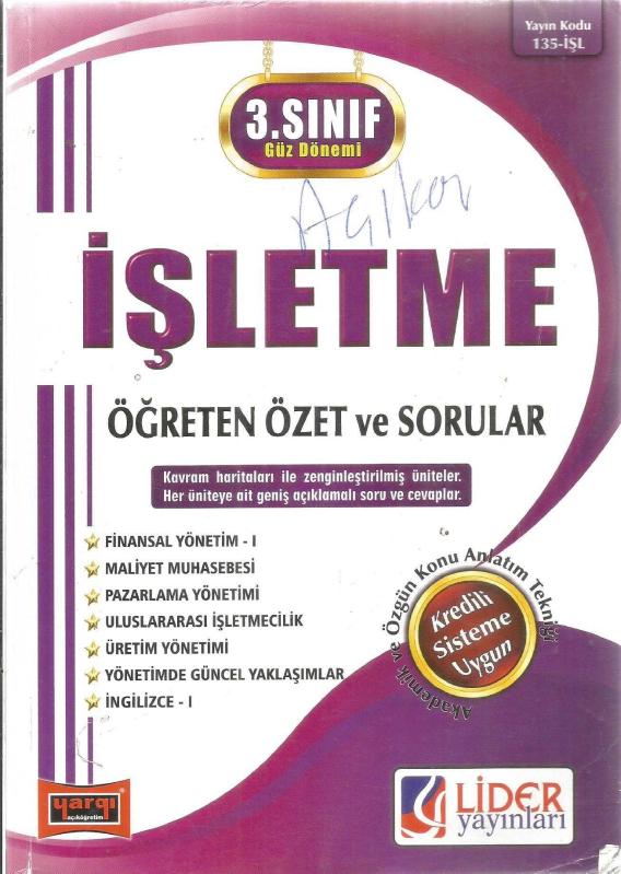 İŞLETME 3. SINIF ÖĞRETEN ÖZET VE SORULAR (FİNANSAL YÖNETİM 1 - MALİYET MUHASEBESİ - PAZARLAMA YÖNETİMİ - ULUSLARARASI İŞLETMECİLİK) adlı eser, Kitap > Sınav ve Ders Kitapları > Ders Kitapları > Üniversite kategorisinde İkinci El olarak satıştadır.