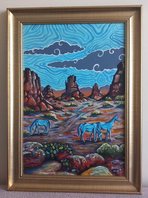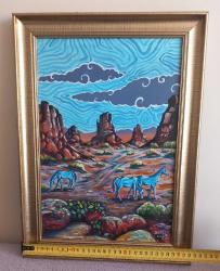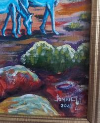 " İSMAİL 2021" İMZALI KONTRPLAK ÜZERİNE RESMEDİLMİŞ YAĞLIBOYA TABLO. KONDİSYON YÜKSEK