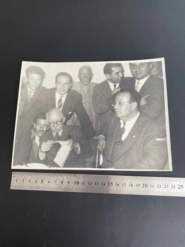 İSMET İNÖNÜ KOLEKSİYONLUK fotoğraf. 29 Nisan 1960 tarihinin not edildiği siyah beyaz fotoğrafta İsmet İnönü kalabalık bir ortamda elindeki evrakı okurken. . Nisan 1960 tarihinde İsmet İnönü, Cumhuriyet Halk Partisi (CHP) Genel Başkanı idi. . Bu dönemde Demokrat Parti (DP) iktidardaydı; Başbakan Adnan Menderes, Cumhurbaşkanı ise Celâl Bayar’dı. İnönü ise muhalefet lideri olarak DP yönetimini sert şekilde eleştiriyordu. Özellikle 1960 baharında, ülke genelinde siyasi gerilim çok yüksekti ve İnönü’nün yaptığı bazı gezilerde olaylar yaşanmıştı. . 2 Nisan 1960 tarihinde Uşak’ta İnönü’ye saldırı gerçekleşti. O gün İsmet İnönü, seçim gezisi kapsamında Uşak’a gitmişti. Ancak Demokrat Parti yanlısı bazı grupların tepkisi ve kışkırtmalar sonucu şehirde büyük bir gerginlik çıktı. İnönü’nün konvoyu taşlandı, aracının camları kırıldı, ortamda ciddi bir arbede yaşandı. . Bu fotoğraf muhtemelen İnönü’nün ülke gezilerinden birinde çekildi. Fotoğraf Uşak’taki saldırıdan sonraki günlerde çekilmiştir. . Ebat: 24 x 18 cm
