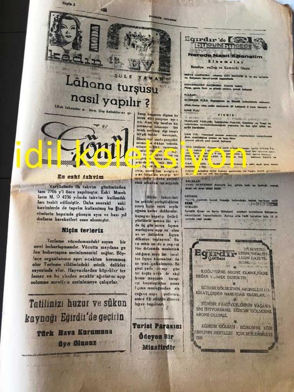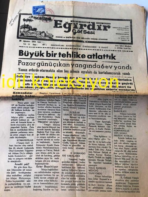 ISPARTA EĞİRDİR GÖL SESİ GAZETESİ YEREL TAŞRA BASINI ---28 Ağustos 1973 Yıl :21 Sayı :4971--Büyük bir tehlike atlattık --Etem Kartal -Lahana Turşusu Nasıl Yapılır ?--Üretme istasyonu ve ziraat meslek okulu müdürlüğünden Yıpranma, sararmalar, kupon kesiği ve yırtılmalar zamana bağlı olarak görülebilir.