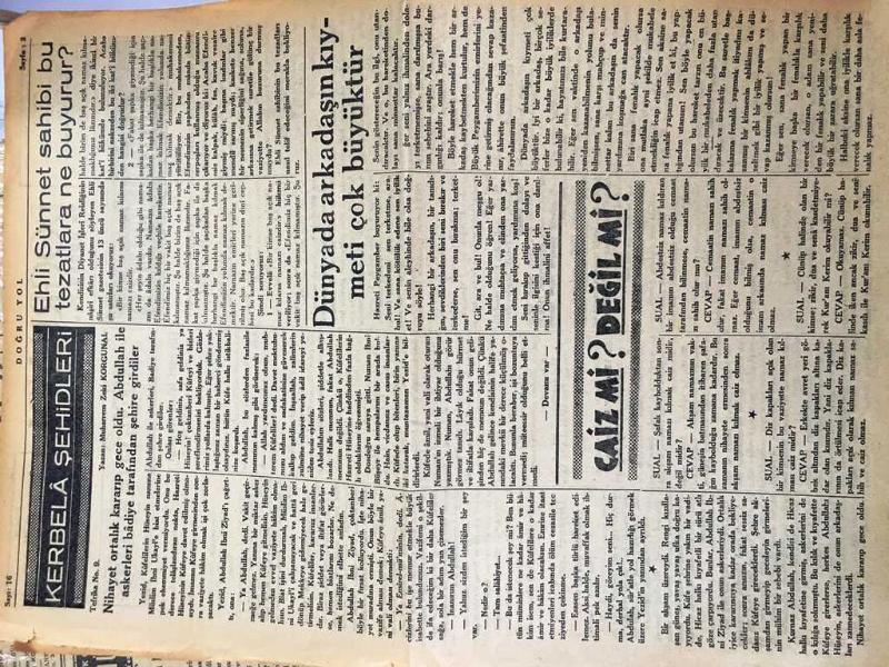 İSTANBUL DOĞRU YOL GAZETESİ YEREL TAŞRA BASINI - EBA MÜSLİMİ HORASANİ Yazan :Muharrem Zeki Korgunal - Diyanet İşleri Reisliğinin Nazarı Dikkatine - Diyanet İşleri Reisliğinden Soruyoruz - Kerbela Şehidleri Yazan : Muharrem Korgunal Nihayet ortalık kararıp gece oldu .Abdullah ile Askerleri Badiye Tarafından Şehre Girdiler - Ehli Sünnet Sahibi Bu Tezatlara Ne Buyurur ? Dünyada arkadaşın kıymeti çok büyüktür - La İlahe İllallah Muhammedün Resulullah - Peygamberimiz nefsi için kimseden intikam almamıştır Yazan Eski Alay Müftisi Mehmet Şakir - İtikat Ahirete Nasıl İman Edilir ? Yıpranma, sararmalar, kupon kesiği ve yırtılmalar zamana bağlı olarak görülebilir.