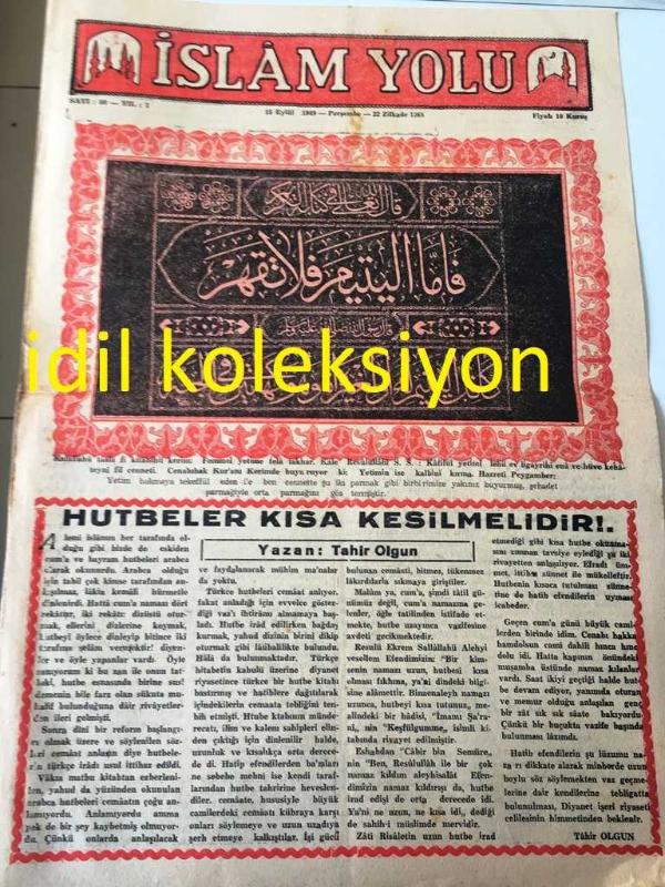 İSTANBUL İSLAM YOLU GAZETESİ YEREL TAŞRA BASINI ---15 Eylül 1949 SAYI :50 Yıl :1--Hutbeliler Kısa Kesilmelidir :Tahir Olgun --İstanbul da ki İlmi Cemiyetler ve Darülşafakanın Kuruluşu --Manzum Mektup :Tahir Olgun --Asi Abaza Mehmet Paşa --İslam da İlk Resmi Muallim --, ESAT EKİCİGİL tarafından kaleme alınmıştır. Kitap 1949 yılında [ŞAKA MATBASI ] yayınlanmıştır. 4 sayfadır. İSTANBUL İSLAM YOLU GAZETESİ YEREL TAŞRA BASINI ---15 Eylül 1949 SAYI :50 Yıl :1--Hutbeliler Kısa Kesilmelidir :Tahir Olgun --İstanbul da ki İlmi Cemiyetler ve Darülşafakanın Kuruluşu --Manzum Mektup :Tahir Olgun --Asi Abaza Mehmet Paşa --İslam da İlk Resmi Muallim -- adlı eser Türkçe dilindedir.