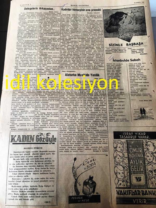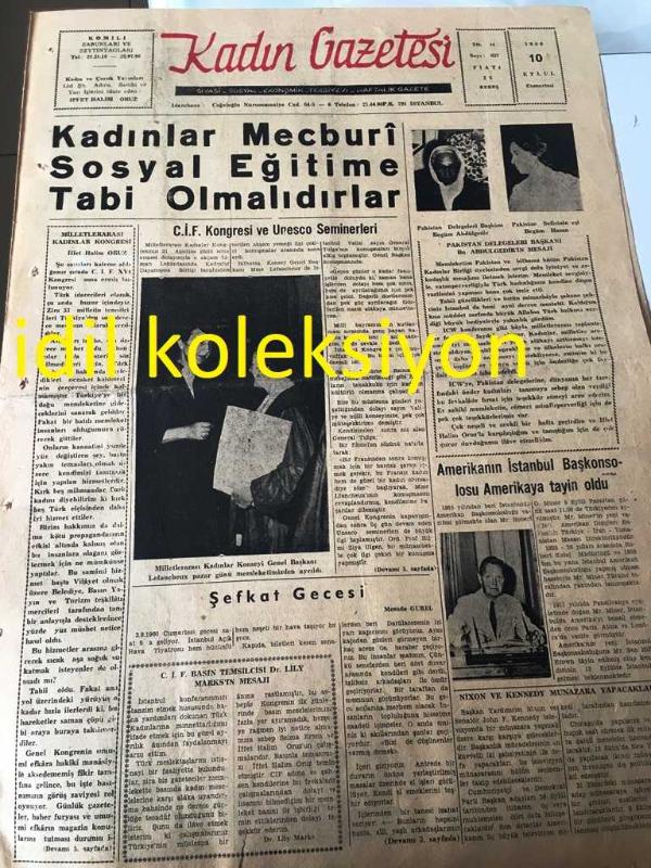 İSTANBUL KADIN GAZETESİ YEREL TAŞRA BASINI ---10 Eylül 1960 Yıl :14 Sayı :627--Kadınlar Mecburi sosyal eğitime tabi olmalıdır --C.İ.F Kongresi Unesco Seminerleri --Pakistan Delegeleri Başkanı Begüm Abdülgedir -Pakistan Sefirin Eşi Begüm Hasan --Amerikan İstanbul Başkonsolosu Amerika Tayin Oldu --Kadınlar Konseyinin ana prensibi :Muzaffer Usluata --Alaturka Musikide Yenilik :Salde Çalt --İzmir Fuarında Amerika Günü Kutlandı --Charıton Heston --Zeki Müren Sanat Zirvesindeki Mevkiini Edebiyen Muhafaza Edecektir ----Raşit Biçersoy --Terbiyeli Maymunlar :Yazan :Mesude Gürel --Sağlık : Yazan Dr Ali Sıpaher ---Spor :Serbest Güreşlerde şampiyon oldu --