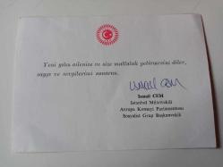 İSTANBUL MİLLETVEKİLİ İSMAİL CEM ISLAK İMZALI YENİ YIL TEBRİK KARTI...