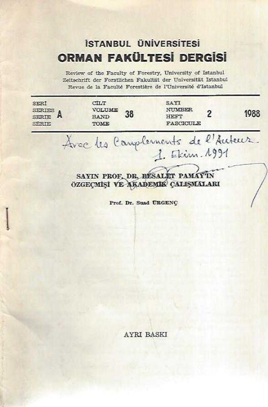 İSTANBUL ORMAN FAKÜLTESİ DERGİSİ SERİ: A CİLT: 38 SAYI: 2 1988, DOÇ. DR. SUAD ÜRGENÇ tarafından kaleme alınmıştır. Kitap 1988 yılında İ.Ü ORMAN FAKÜLTESİ YAYINLARI tarafından [İSTANBUL] yayınlanmıştır. 26 sayfadır. İSTANBUL ORMAN FAKÜLTESİ DERGİSİ SERİ: A CİLT: 38 SAYI: 2 1988 adlı eser Türkçe dilindedir.