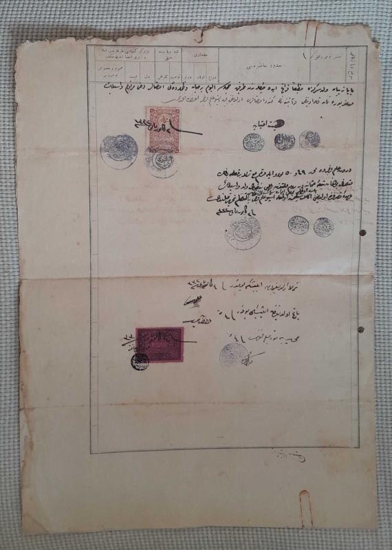 Hicri 1332 tarihli eski turkce tapu senedi,haliyle. Yazılar,pullar ve negatif dalgalar çok iyi kondisyonda. Konusu: İstanbul,yenikoy tapu dairesi,istinye mahallesi bir tarla ve bağ . Not:ürünlere fatura gönderilmeyecektir.