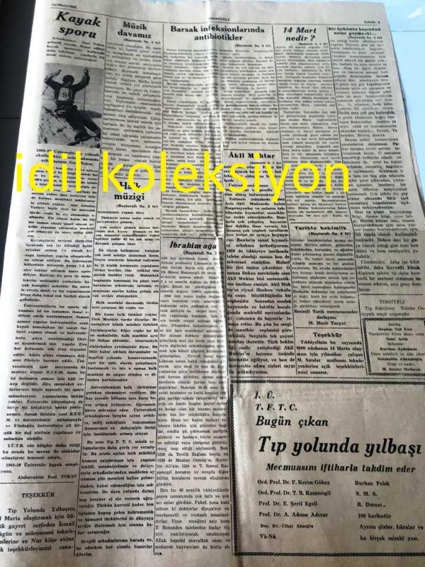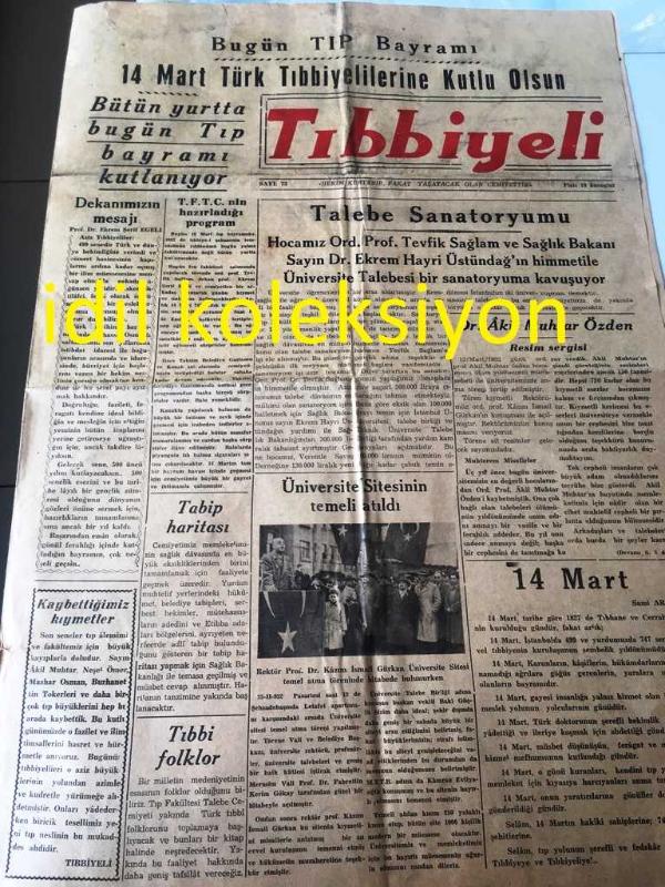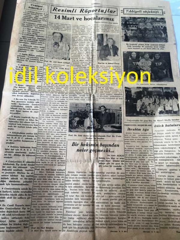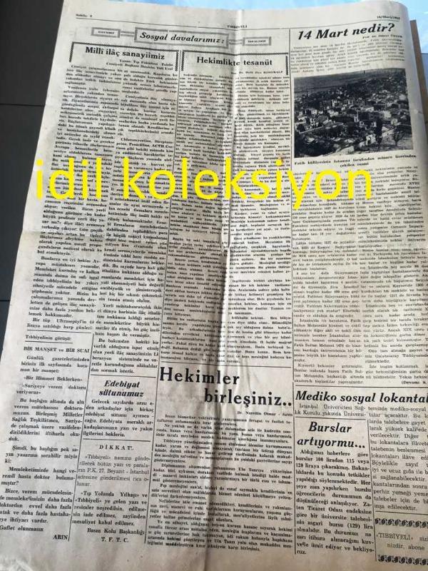 İSTANBUL TIBBIYELİ GAZETESİ YEREL TAŞRA BASINI ---14 MART 1952 ---Bütün Yurtta Bugün Tıp Bayramı Kutlanıyor --Talebe Sanatoryum Hocamız Ord Prof . Tevfik Sağlam ve Sağlık Bakanı Sayın Dr.Ekrem Hayri Üstündağ Himmet ile Üniversite Talebe Bir Sanatoryuma Kavuşuyor --Dr .Akil Muhtar Özden --14 Mart :Sami Artık --Hekimlikte Tesanüt :Doç Dr :Halit Ziya Konuralp --Prof .Dr .Arif İsmet Çetingil -,Prof .Dr .A. Süheyl Ünver --Stajyerlerle bir grup Doç .Dr :Kamil Akolla -- Yıpranma, sararmalar, kupon kesiği ve yırtılmalar zamana bağlı olarak görülebilir.