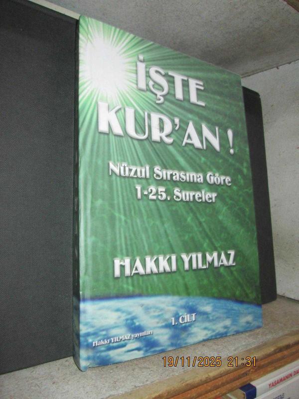 İŞTE KURAN NÜZUL SIRASINA GÖRE 1 - 25. SURELER CİLT 1 - HAKKI YILMAZ..HAKKI YILMAZ YAYINLARI İZMİR..2005 BASIM..415 SAYFA..CİLTLİ VE ÇOK TEMİZ.