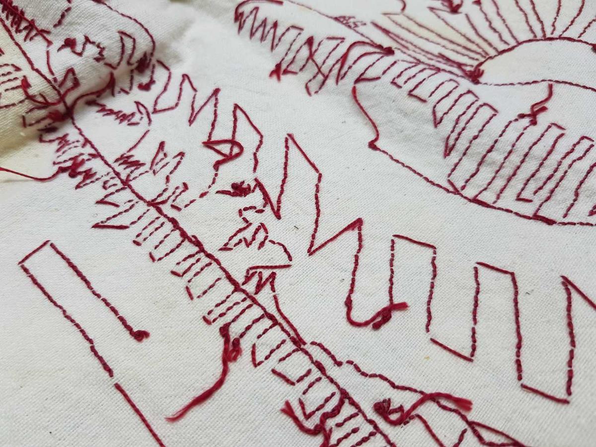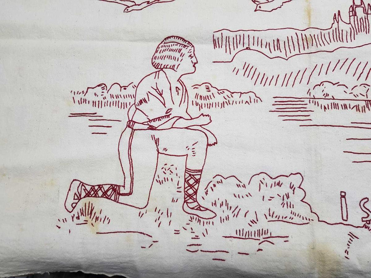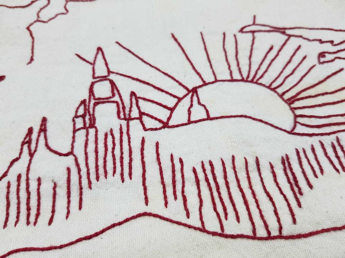 1940-1950'LERDEN VATAN SEVGİSİ KONULU EL İŞLEME DUVAR PANOSU. PAMUKLU KUMAŞ ÜZERİ İPLİKLERLE EL İŞLEME YAPILMIŞ NADİR BİR PANO. EBAT: 98 X 61 CM