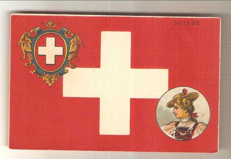 ** İSVİÇRE BAYRAK TEMALI KARTPOSTAL ** 14 x 9 cm.ebadında,arkası yazısız,Magasin General Marseille baskısı, gayet iyi kondüsyonda tematik kartpostal...