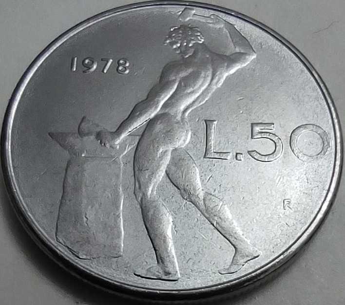 İtalya'nın 1954'ten 1989'a kadar neredeyse hiç değişmeden basılan bu ikonik tasarımı, Roma mitolojisine saygı duruşu niteliğindedir. Paranın ön yüzünde (obverse), klasik bir İtalyan kadın başı portresi ve çevresinde meşe yapraklarından bir çelenk yer alır. Arka yüzünde (reverse) ise ateşi, demirciliği ve zanaatkarlığı temsil eden tanrı Vulcanus (Yunan mitolojisindeki Hephaistos), bir örs üzerinde demir döverken betimlenmiştir. Paslanmaz çelik alaşımı olan Acmonital'den üretilen bu para, İtalya'nın savaş sonrası sanayileşme ve zanaat gücünü simgeler. 1978 baskısı, bu uzun soluklu serinin en karakteristik yıllarından biridir.