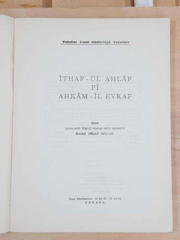 İTHAF-ÜL-AHLAF Fİ AHKAM-İL-EVKAF adlı eser, Kitap > Tarih > Kurumlar Tarihi kategorisinde İkinci El olarak satıştadır.