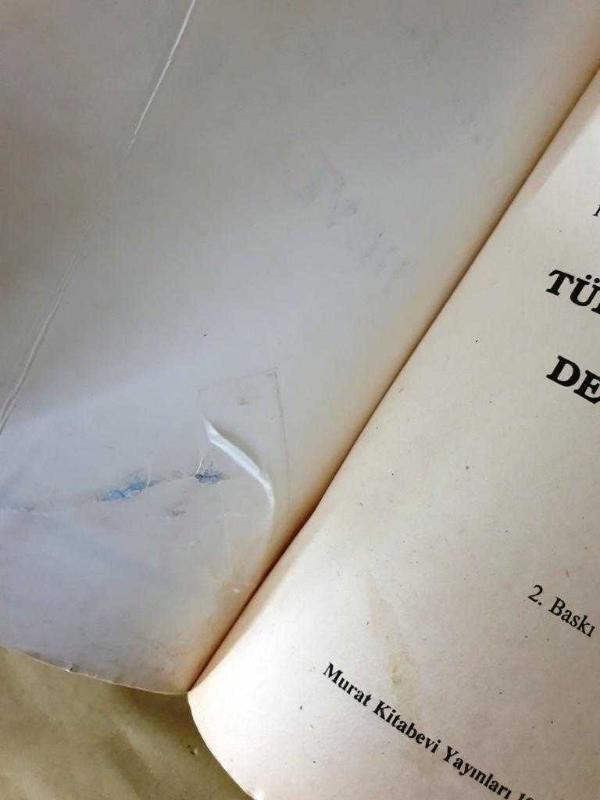Nadiren bazı sayfalarda satır altları çizilidir ve küçük notlar vardır. Ön kapak içinde yırtık fotoğraftaki gibi şeffaf bantla yapıştırılmıştır. İlk sayfanın boş olan alt kenarında küçük yrtılma vardır.
