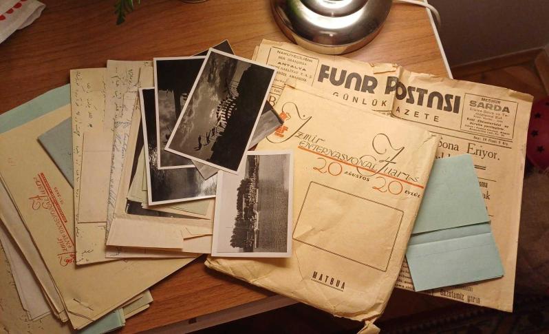 - Dönemin Başbakanları Recep Peker, Şükrü Saraçoğlu ile fuarın açılış fotoğrafları - Fuar fotoğrafları ( 1930, 1940, 1950....yıllar) - 20 Eylül 1945 tarihli Fuar Postası Gazetesi - İzmir Fuarı antetli sayfalara yazılmış Eski Türkçe / Yeni türkçe notlar, şiirler, mektuplar.. - Dünyanın çeşitli yerlerinden postalanmış 100'e yakın kartpostal ( 1930, 1940, 1950....yıllar) - Kendisi ve ailesine ait yüzlerce fotoğraf