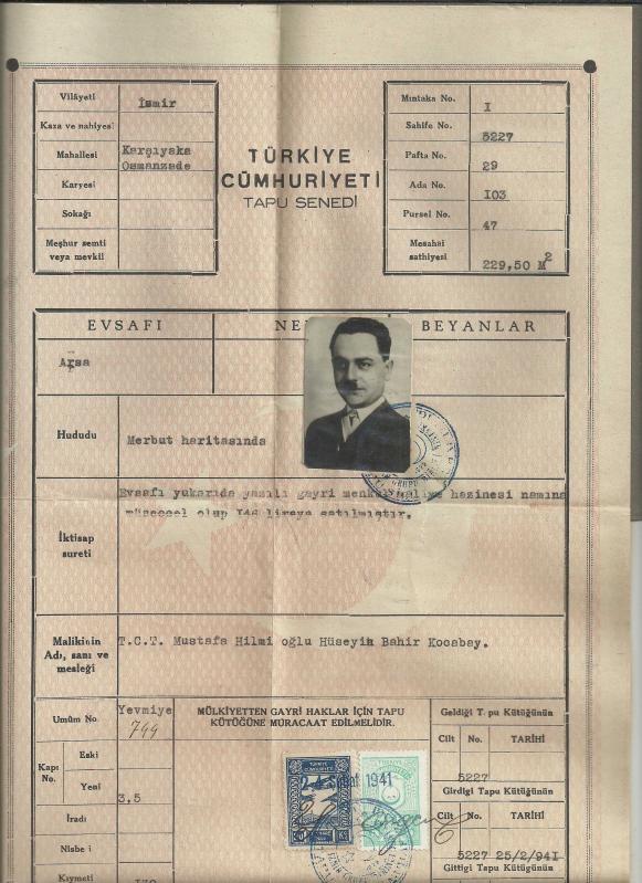 ** İZMİR KARŞIYAKA TAPU SENEDİ ** Çok iyi kondüsyonda,özel kendi kabı içerisinde, 24 Şubat 1941 tarihli,bir tayyare birde damga pullu, Bahir Kocabay adına düzenlenmiş tapu senedidir...