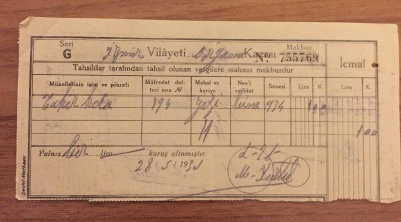 İZMİR VİLAYETİ, BERGAMA KAZASI - TAHSİLDAR TARAFINDAN TAHSİL OLUNAN VERGİLERE MAHSUS MAKBUZDUR - 28 . 5 . 1934 TARİHLİ, 8 saat önce satışa sunulmuştur.