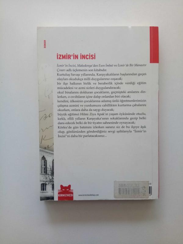 İzmirin İncisi adlı bu kitap Makedonyadan Esen İmbat ve İzmirde Bir Manastır Çınarı adlı üçlemenin son kitabıdır Kurtuluş Savaşı yıllarında Karşıyakalıların başlarından geçen olayları okudukça milli duygularınız coşacak Bir ilçe halkının birlik ve beraberlik içinde verdiği eğitim mücadelesi ve azmi sizleri duygulandıracak Okul binalarını dolduran çocukların geçmişteki anılarını dinlerken o cıvıltıların içine dalıp onlardan biri olacak Kendini ülkesinin çocuklarına adamış ünlü öğretmenlerimizin çalışma azmini ve yurdumuzu cahillikten kurtarma çabalarını okurken onlara daha da saygı duyacak Anıt Eğitimci Hilmi Ziya Apakın yaşam öyküsünde otuzlu kırklı ellili yılların Karşıyakasının sokaklarında gezip belki dans edecek belki de bir tiyatro sahnesinde oynayacak Körfezde gün batımını izlerken sanırız siz de bu ilçeye aşık olup gönlünüzden gönderdiğiniz sevgi ışıltılarıyla İzmirin İncisini daha bir parlatacaksınız