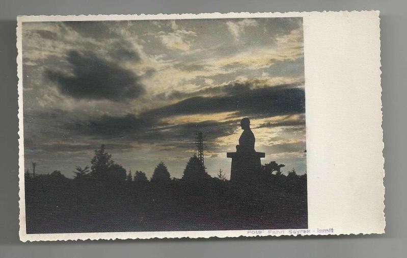 ** İZMİT FAHRİ SEYREK ÇALIŞMASI ŞAHANE RENKLERLE BİR ATATÜRK HEYKELİ SİLÜET GÖRÜNÜMÜ ** 14 x 9 cm.ebadında,çok iyi kondüsyonda,arka yüzünde yazısı olmayan orijinal fotokarttır...