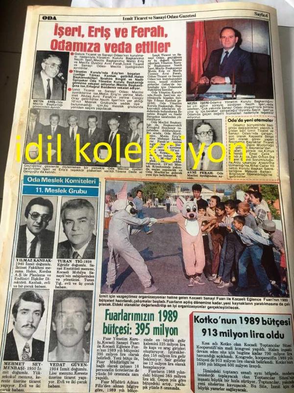 İZMİT TİCARET VE SANAYİ ODASI GAZETESİ YEREL TAŞRA BASINI --- 4 OCAK 1989 --GOSB 'nin temelini Başbakan Özal Attı --Cumhurbaşkanlığı Konseyi Üyesi :Nejat Tümer Karamürsel de ki Nazmi Oğuz İlkokulunu hizmete açarken --Hayırseverlerden Eğitime Katkı ---Cemil Akbulut 'u kaybettik ---Tüsside 'nin bu yılın ilk altı ayındaki seminer programı açıklandı --İşerl ,Eriş ve Ferah Odamıza Veda Ettiler --Oda Meslek Komiteleri 11. Meslek Grubu :Yılmaz Kanbak ,Turan Tığ ,Mehmet Seymenbaşı , Vedat Güven --Nezih İşleri :Odamız Yönetim Kurulu Başkanlığı ---İlaç ve ilaç ham maddelerinin patent kanunu kapsamı dışında tutulması istendi --- Yıpranma, sararmalar, kupon kesiği ve yırtılmalar zamana bağlı olarak görülebilir.