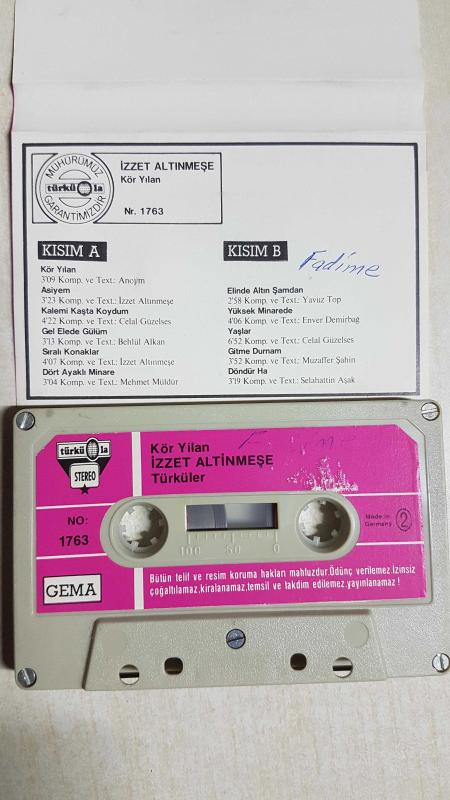 İZZET ALTİNMEŞE 1763 KÖR YILAN TÜRKÜLA ALMAN BASKI başlıklı ürün, Efemera, Müzik, Sinema > Müzik, Plak, Kaset, CD > Müzik Kaseti > Yerli Müzik Kaseti kategorisi altında İkinci El olarak satılmaktadır.