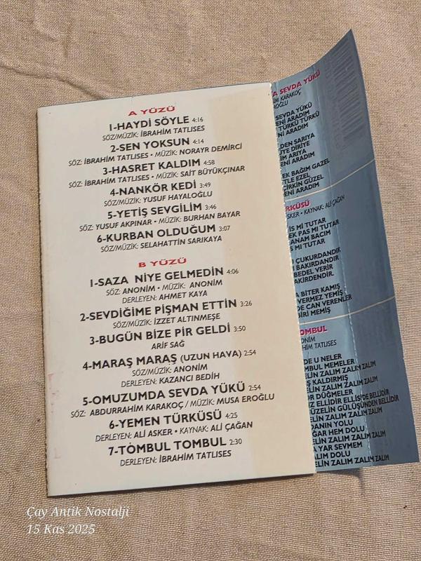 İbrahim Tatlıses HAYDİ SÖYLE SADECE KARTONET başlıklı ürün, Efemera, Müzik, Sinema > Müzik, Plak, Kaset, CD > Müzik Kaseti > Yerli Müzik Kaseti kategorisi altında İkinci El olarak satılmaktadır.