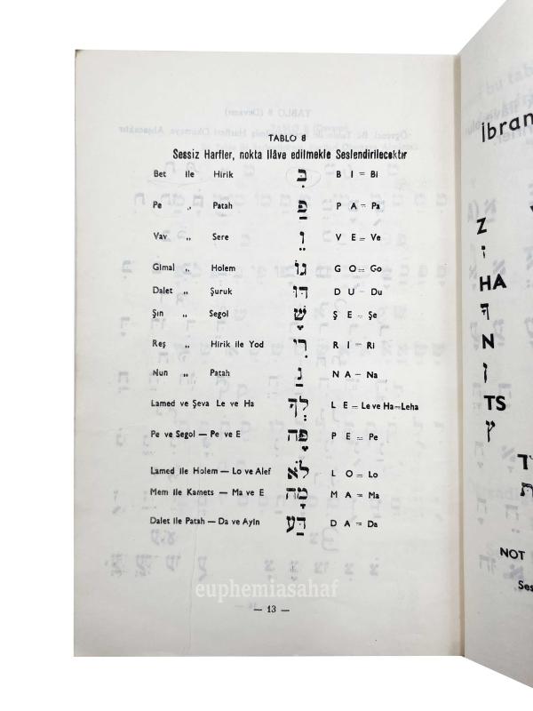 Özgün karton kapağında, sırtında soyulma ve ilk iki sayfasının uçlarında kopukluk mevcuttur, 24 x 17 cm, 60 sayfa, İbranice / Türkçe. "İbranice silaber. More adereh", NİSİM BEHAR, Ofset Basım, İst., 1977.