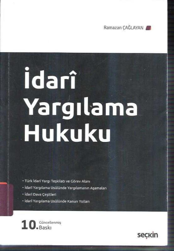 İdari Yargılama Hukuku, Ramazan Çağlayan tarafından kaleme alınmıştır. Kitap 2018 yılında Seçkin Yayıncılık tarafından [Ankara] yayınlanmıştır. 872 sayfadır. Sayfa bilgisi 1. hamur olarak belirtilmiştir. İdari Yargılama Hukuku adlı eser Türkçe dilindedir.