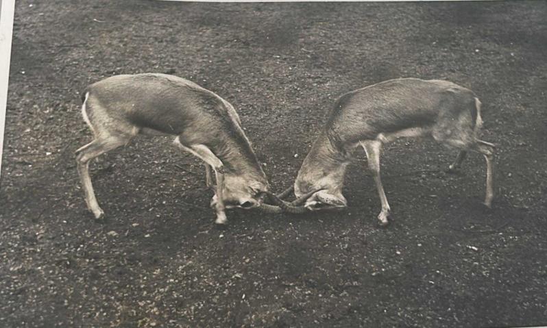 İki genç geyiğin birbirleriyle boynuz tokuştururken çekilmiş olan fotoğrafı.ORJİNAL SİYAH & BEYAZ 17x12cm EBADINDA - 1940'LAR, 1950'LER, 1960'LAR ve 1970'LER, en son 9 ay önce güncellenmiştir.